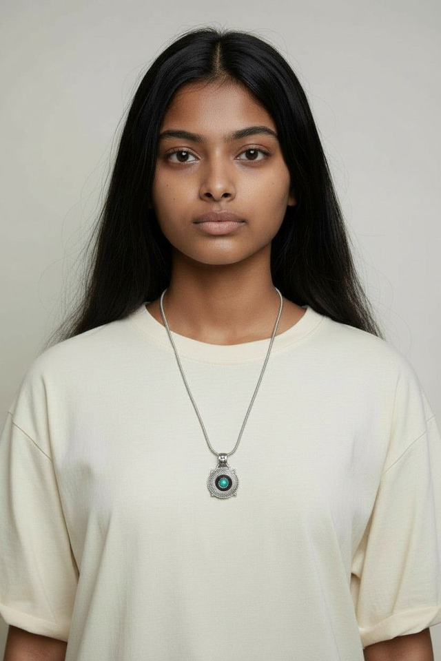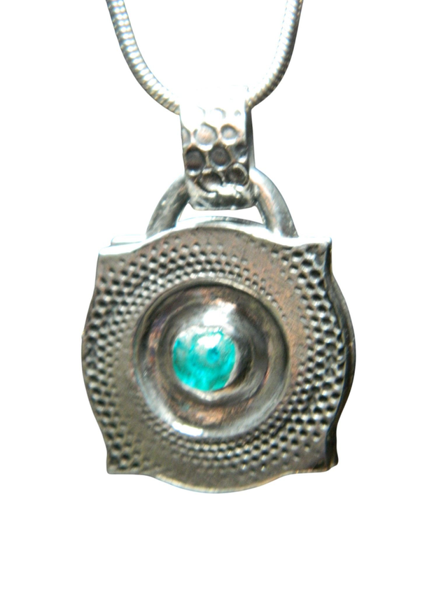 An exquisite turquoise and emerald coloured Murano glass necklace, a perfect blend of elegance and artistic design. Featured in a unique shadow box design, this accessory captures the captivating interplay of texture and light, making the piece truly one-of-a-kind. Crafted with meticulous attention to detail, the pendant highlights the vibrant hues of the exquisite colour of the Murano glass, adding a touch of sophistication to any outfit.