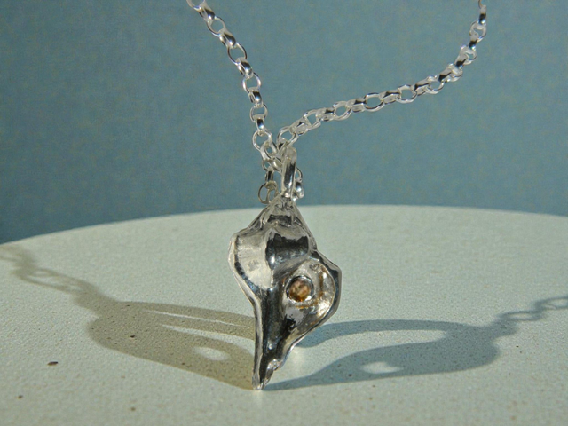 Silver shell pendant with stone