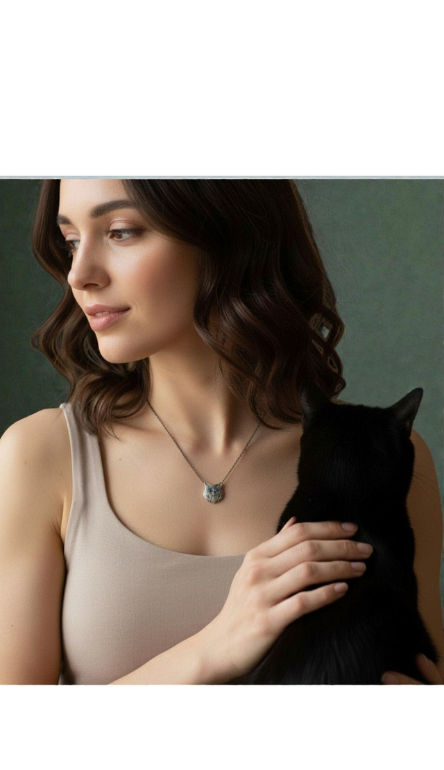 A charming silver necklace, perfect for cat lovers and gemstone enthusiasts alike. Featuring a beautifully crafted animal-inspired design, the pendant showcases vibrant blue gemstones that shimmer with every movement. The textured silver surface, enhanced by a subtle patina (darkening of the silver), adds depth and vintage charm, making it uniquely exquisite. This necklace captures your love for felines while adding a touch of elegance and colour to any ensemble. You will be purring with delight.